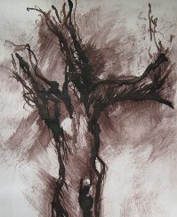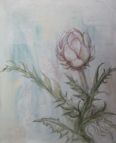 Artischocke 2014, Acryl und Sand, Karton, grundierte Baumwolle 50 x 40 cm
