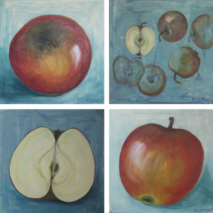 Äpfel 2013, Acryl auf Leinwand, 30 x 30 cm, 4-teilig